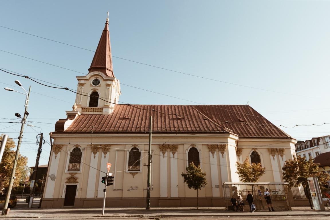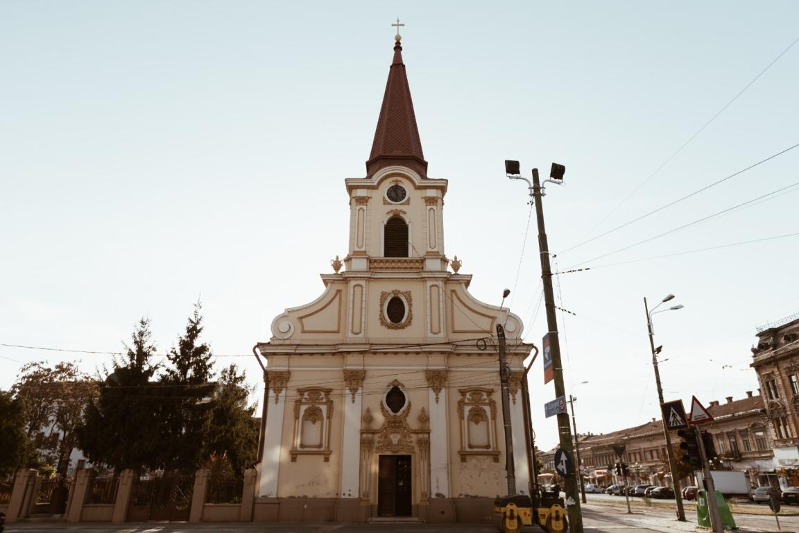 Construcția bisericii a început la un an după ce cartierul, locuit în mare parte de germani, a primit denumirea de „Iosefin” (Josephstadt), în cinstea împăratului Iosif al II-lea. Edificiul prezintă elemente specifice barocului matur, completate de detalii rococo. Biserica a dominat zona atât timp cât Iosefinul și-a păstrat aspectul rural: casele aveau fațada scurtă, cu fronton spre stradă, și fațada lungă spre curte, asemenea satelor bănățene de câmpie.